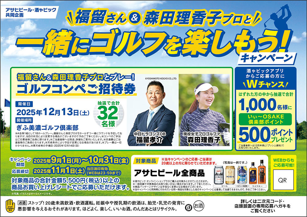 アサヒビール、酒ゃビック共同企画の『福留さん&森田プロと一緒にゴルフを楽しもう!キャンペーン』